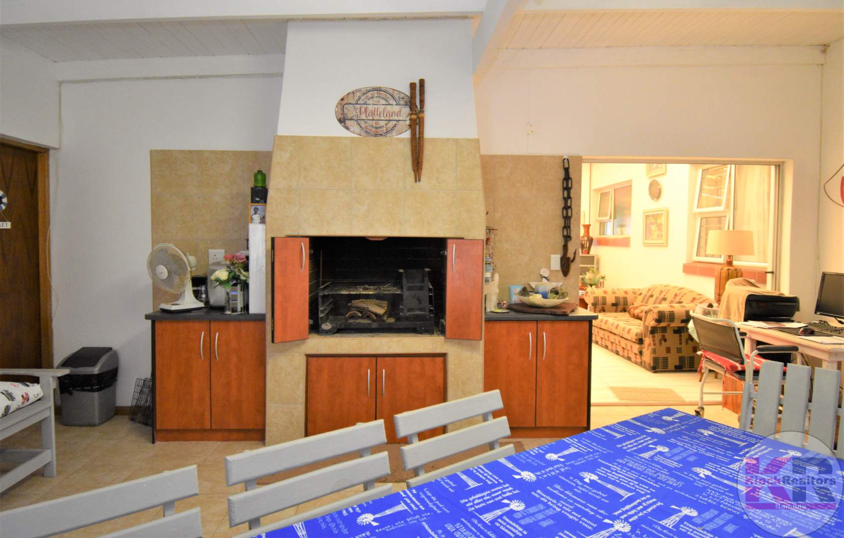 Indoor barbeque area.