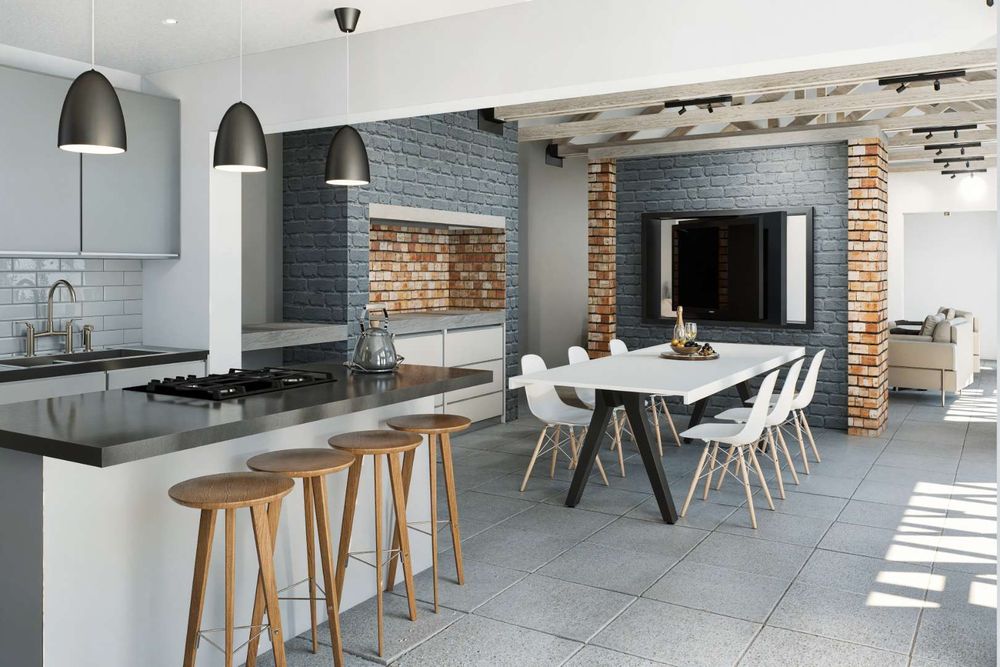 *Open plan kitchen and living area
